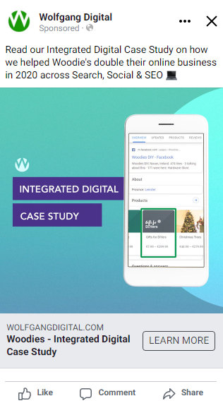We made simple changes on the same type of post by changing the dimensions from horizontal to square to fit better on mobile. We also added branding elements and text overlay displaying an interesting stat, an element that would boost click-through-rate.