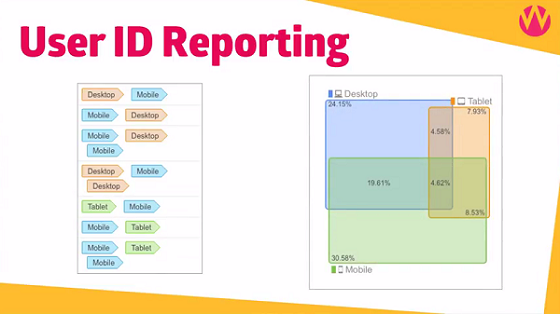 Google have actually helped us in a really interesting way to track cross device and they've done that with Universal Analytics. When Universal Analytics was released, one of the features that was released with Universal Analytics is something called a User ID feature. This is where it gets really interesting, because the User ID feature allows us to associate engagements across multiple sessions from multiple devices. Within Google Analytics, the User ID feature is considered to be a unique user. So we're tracking the user, not the session. You can define that unique ID from your CRM system, or maybe from your logged-in system if people are logging into your website, or even from your email database. That allows us to track across devices. When a user moves from a mobile device to a tablet device, using the User ID we can track that journey.
