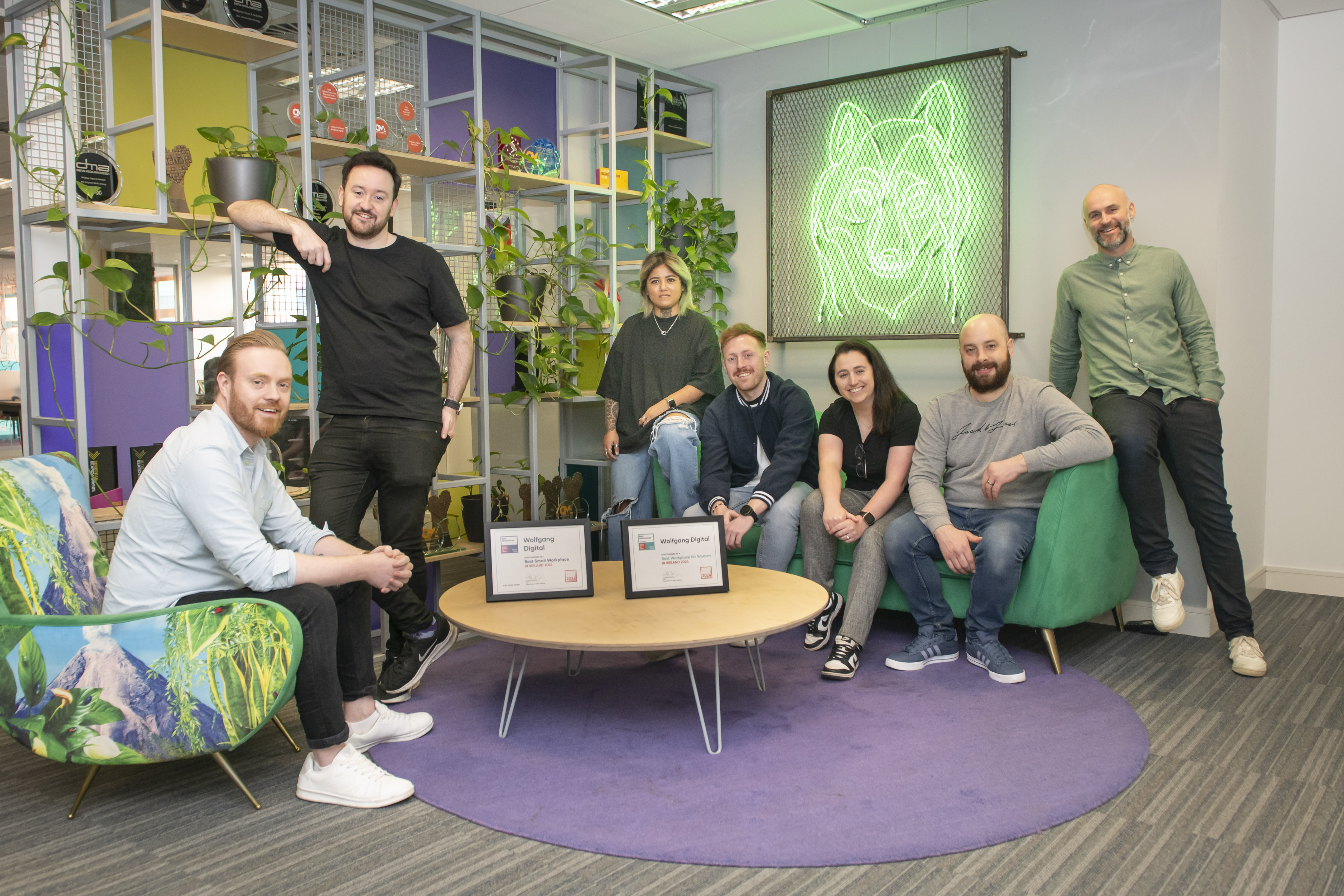 Pictured - Wolfgang Digital's newly elected employee reps with CEO Alan Coleman. Left to right - Chris Bury, Rob Beirne, Shreya Barua, Stephen Murphy, Niamh O'Doherty, Ian Booth, and Alan Coleman.
