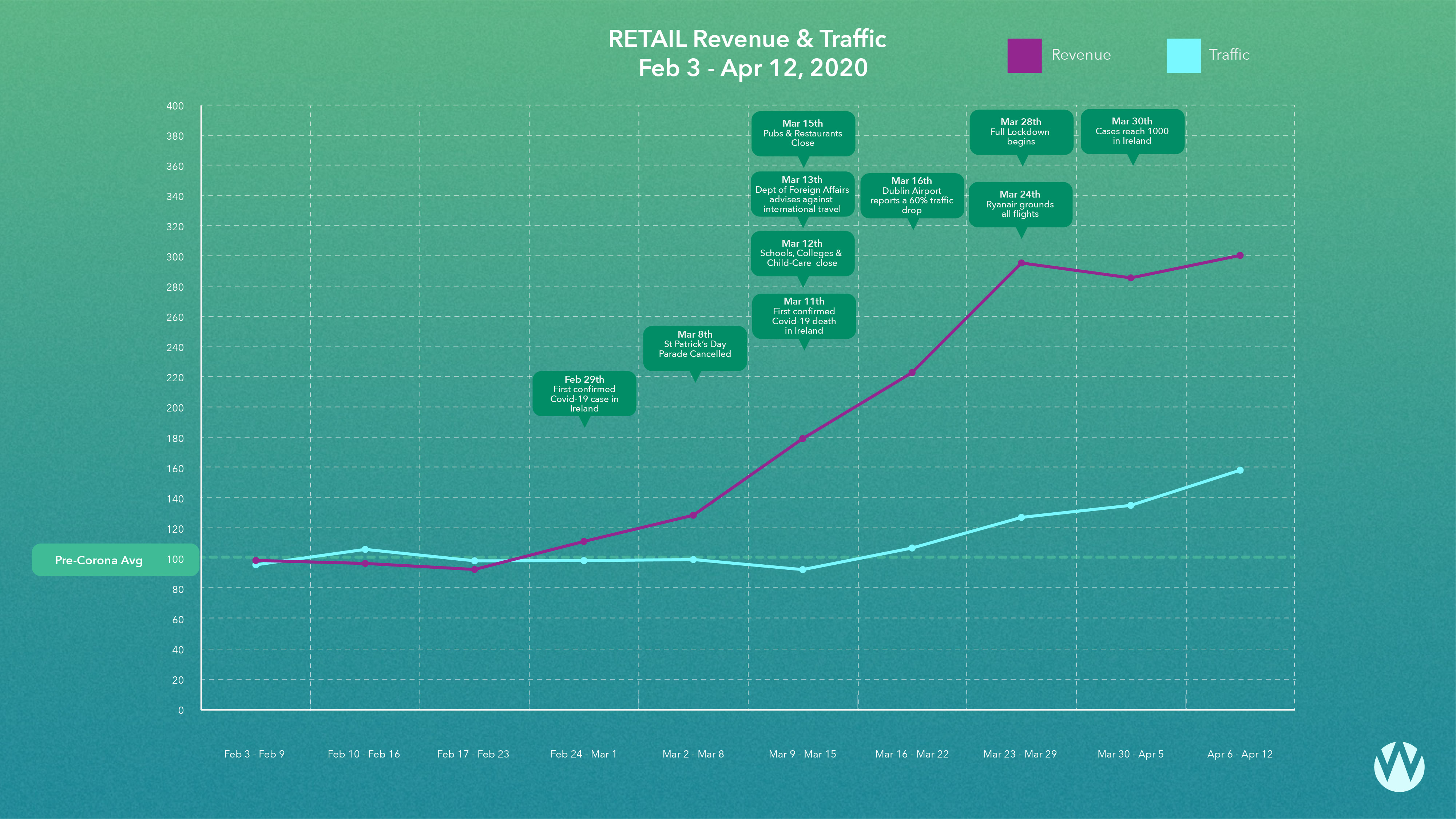 We've analysed over 43 million website sessions and over €150 million euro in online revenue over the past 10 weeks (Mon-Sun), to compile a weekly report covering the previous week's movements in the online economy during the Covid19 crisis.