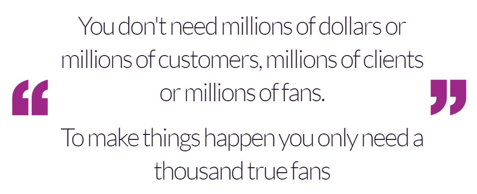 Kevin Kelly, who Al mentioned earlier on, recognised the value of this type of subscriber when he said in his famous article: "you don't need millions of dollars or millions of customers, millions of clients or millions of fans. To make things happen you only need a thousand true fans".